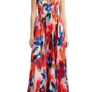 Hutch Vibrant Print Sweetheart Smocked Bustier Bodice Adjustable Tie Straps Accordion-Pleated Skirt Maxi Dress $713.00