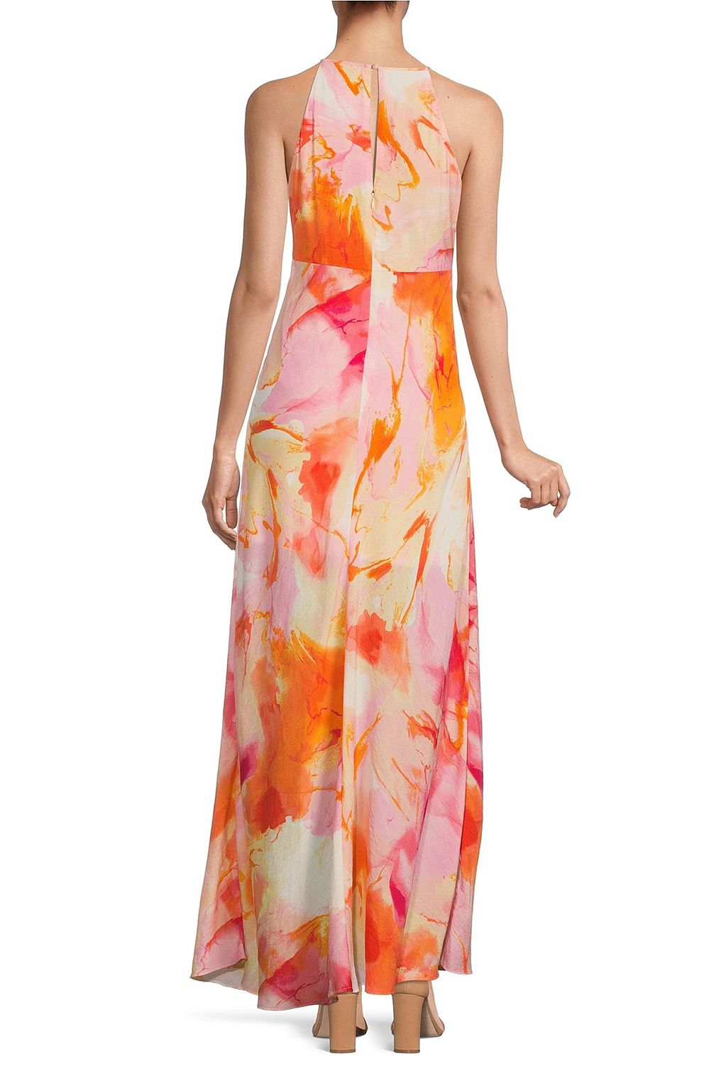 London Times Halter Neckline Keyhole Cutout Sleeveless Side Split Maxi Dress