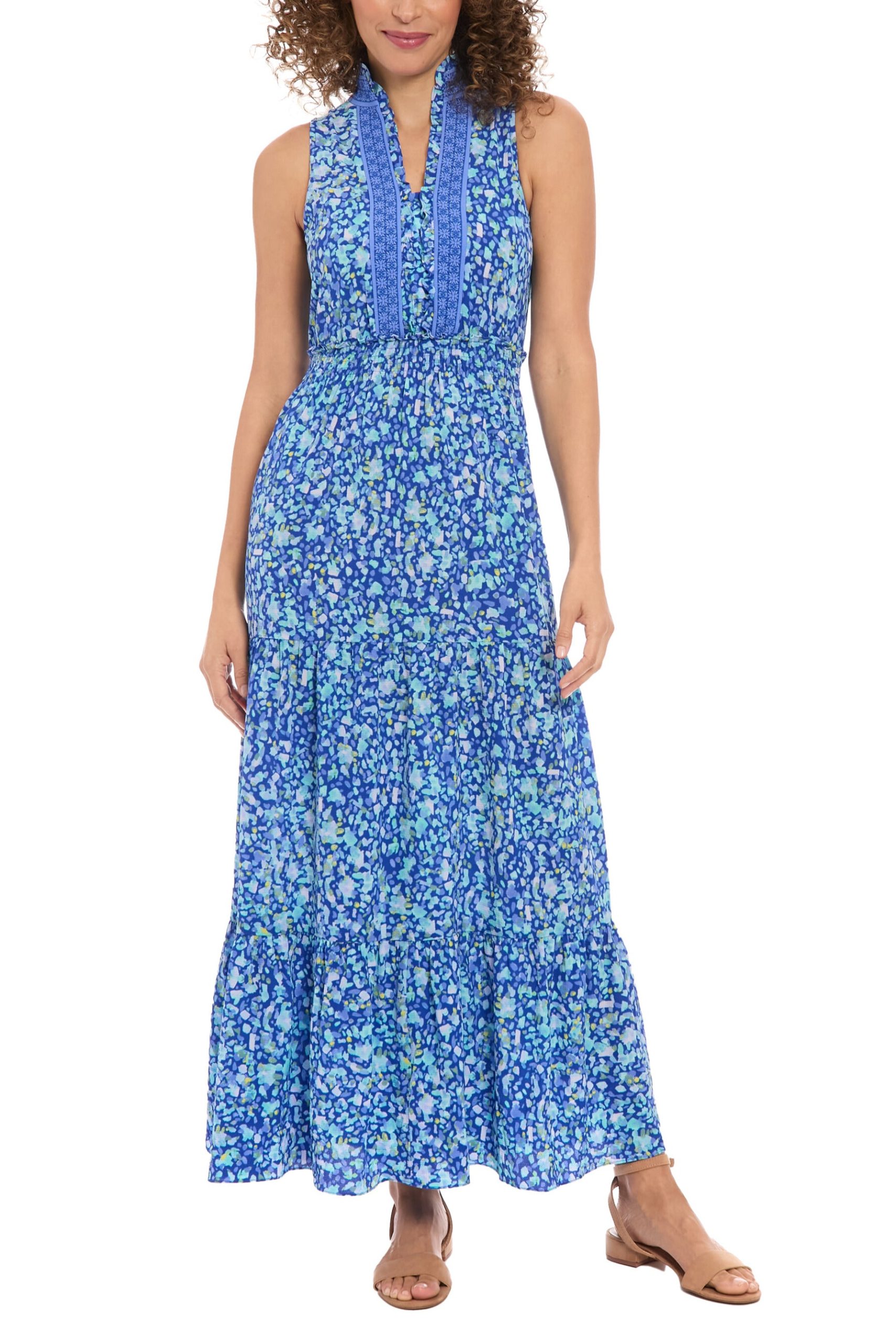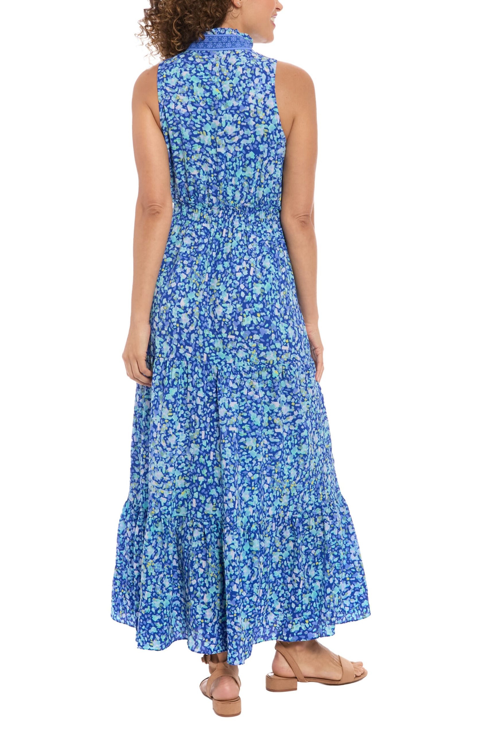 Float effortlessly through your next daytime event in the London Times High Detailed Neckline Sleeveless All-Over Floral Shirred Bodice Maxi Dress. This breezy and romantic maxi is the perfect choice for daytime receptions. beachside gatherings. or summer picnics. The high. intricately detailed neckline adds a touch of sophistication. while the sleeveless design and floral print keep it fresh and seasonally chic.