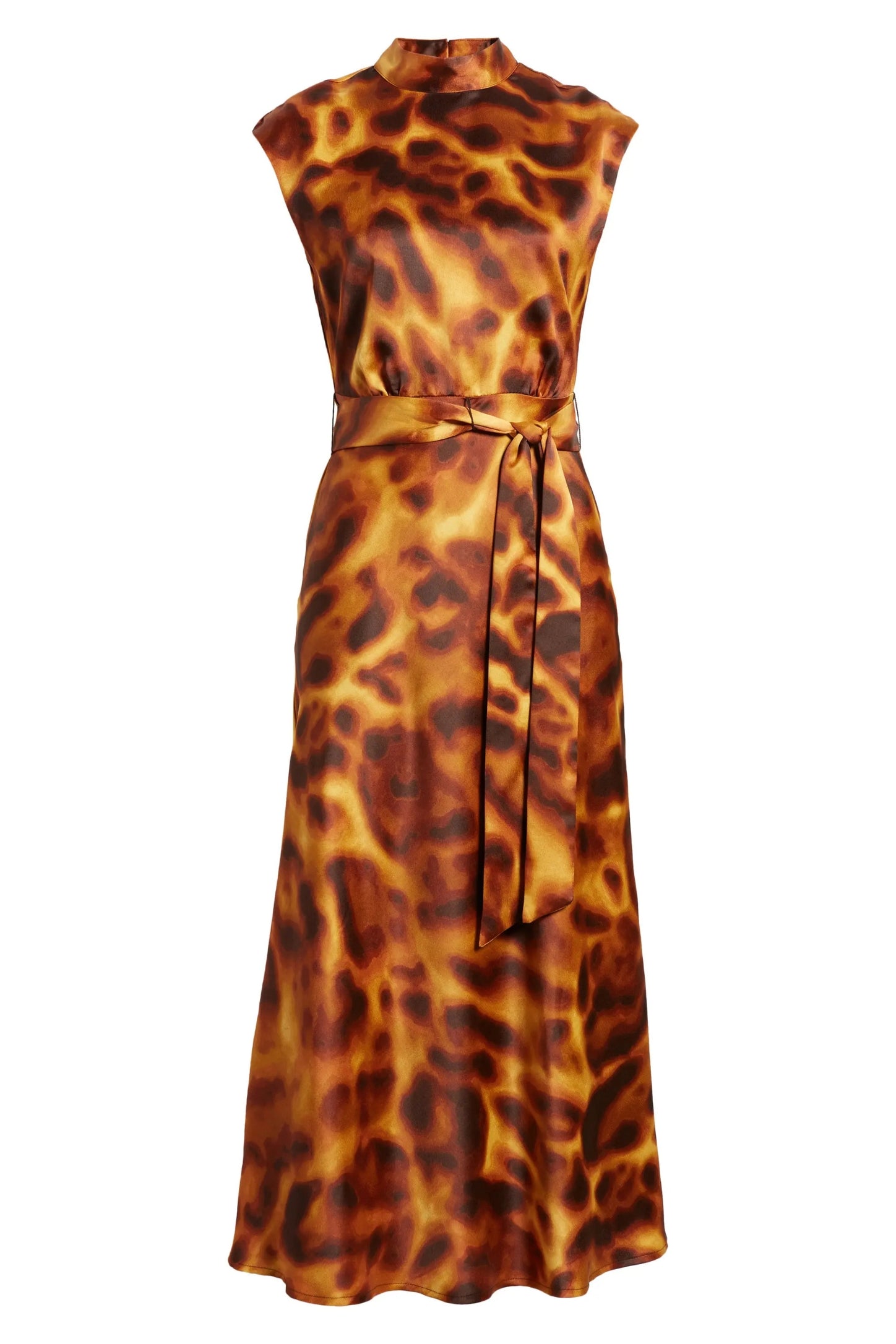 Featuring a sophisticated mock neckline and a removable tie belt. this dress flatters your figure while allowing for versatile styling. The back zipper closure ensures a sleek. tailored fit. while the silky satin finish (100% Polyester) gives a luminous touch. making it an eye-catching statement piece. The soft polyester lining adds comfort. allowing you to move with ease and confidence.